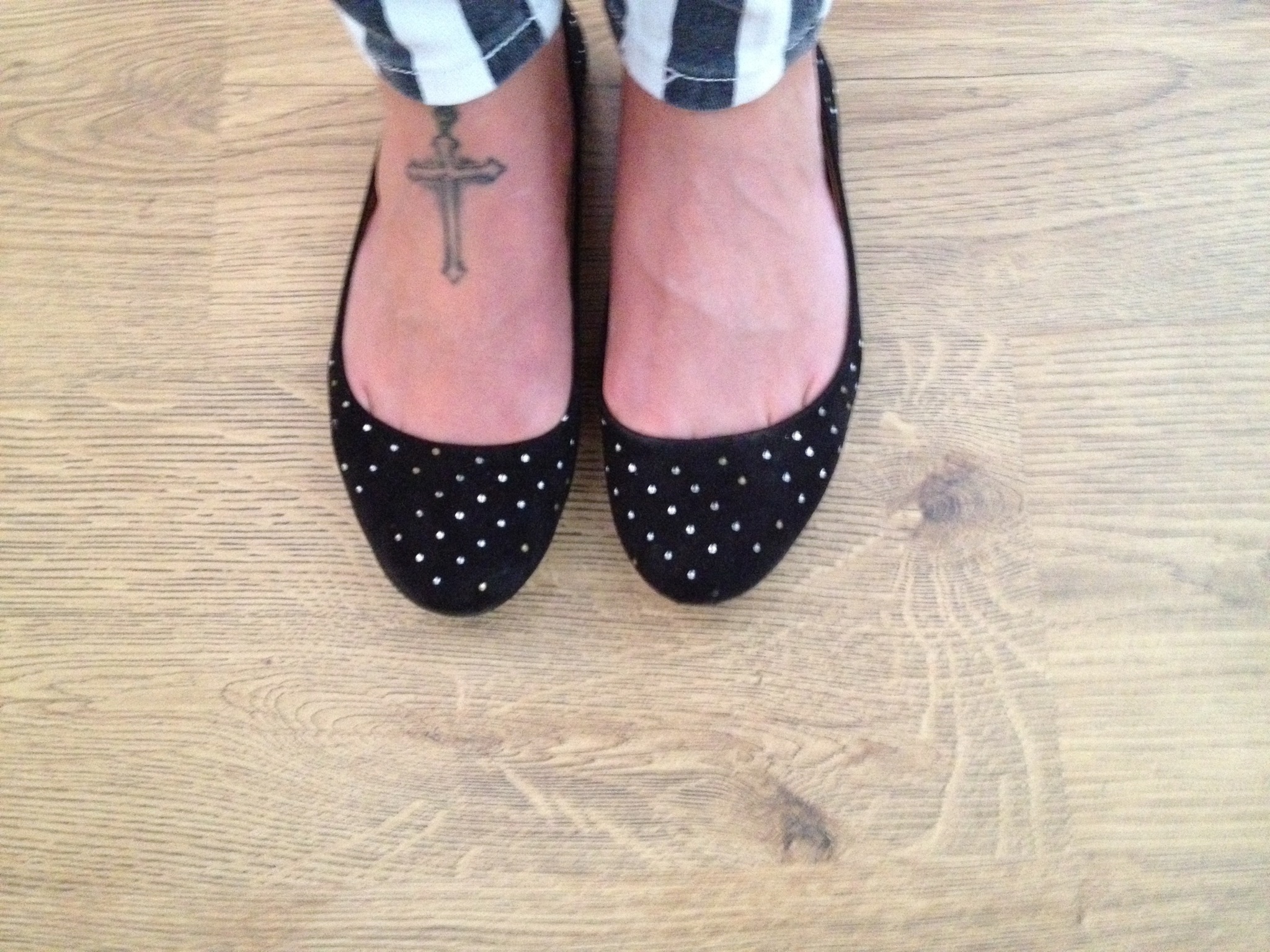 The trousers are almost ankle length (I’m not sure if they are meant to be or just because my legs are long) so it shows most of my ankle tattoo when I wear it with little flats.