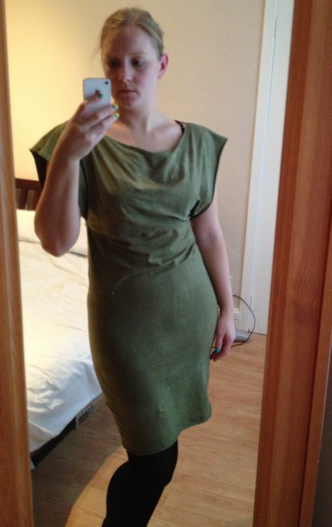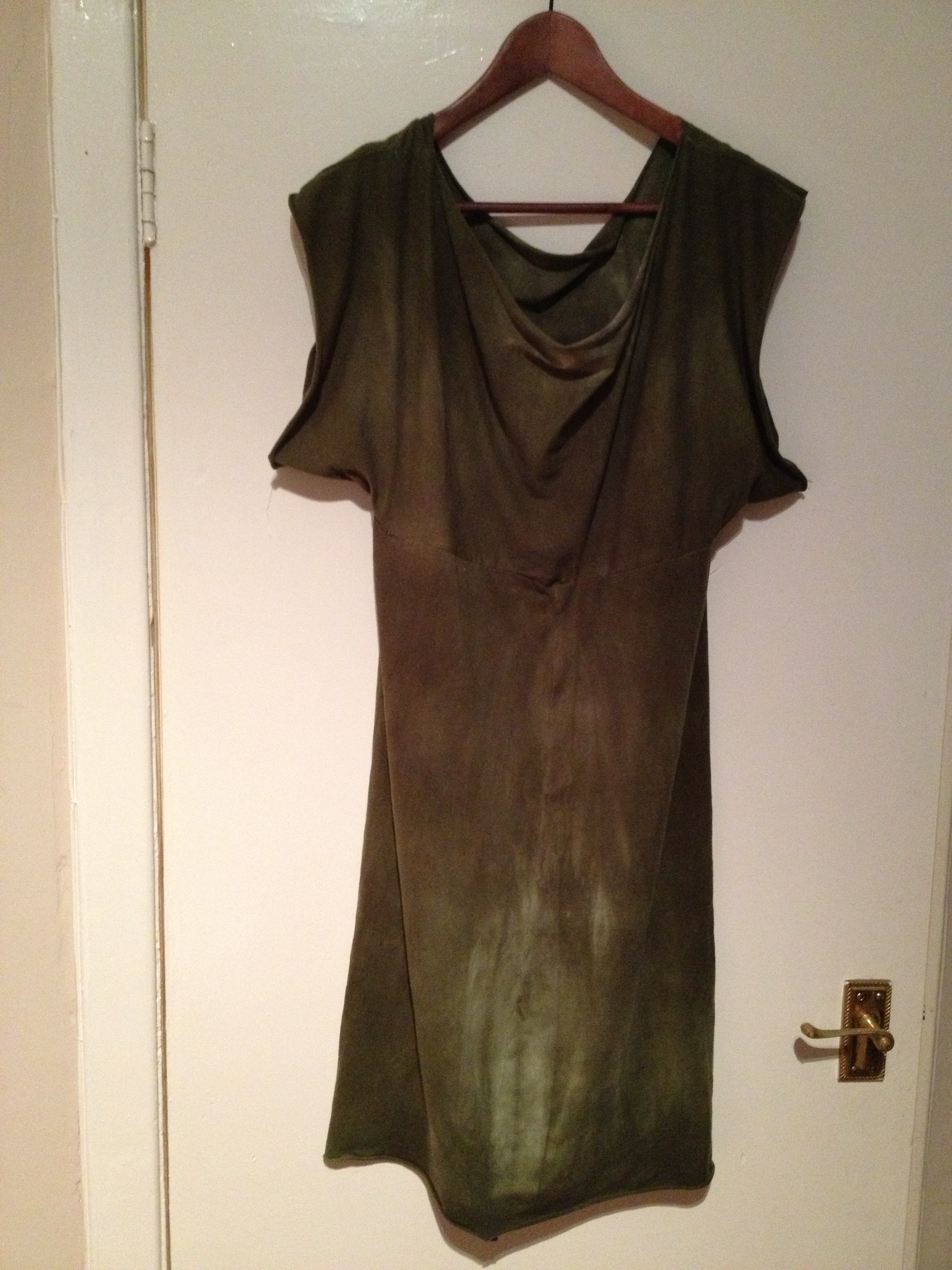 I think I will dye it again to even out the colour and will maybe hem the sleeves to stop the rolling edges. The cowl at the front isn’t a big as I’d like so I may mess around with the measurements if I’m making another dress.