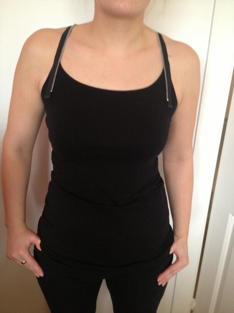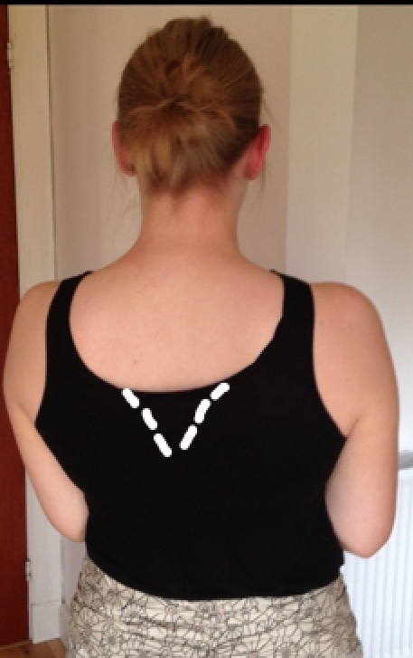 I found when I followed the directions in the tutorial the top ended up too tight. You are effectively pulling the sides in. So I bought another top, one size up from my normal. I then cut a triangle from the back of the top like this.
