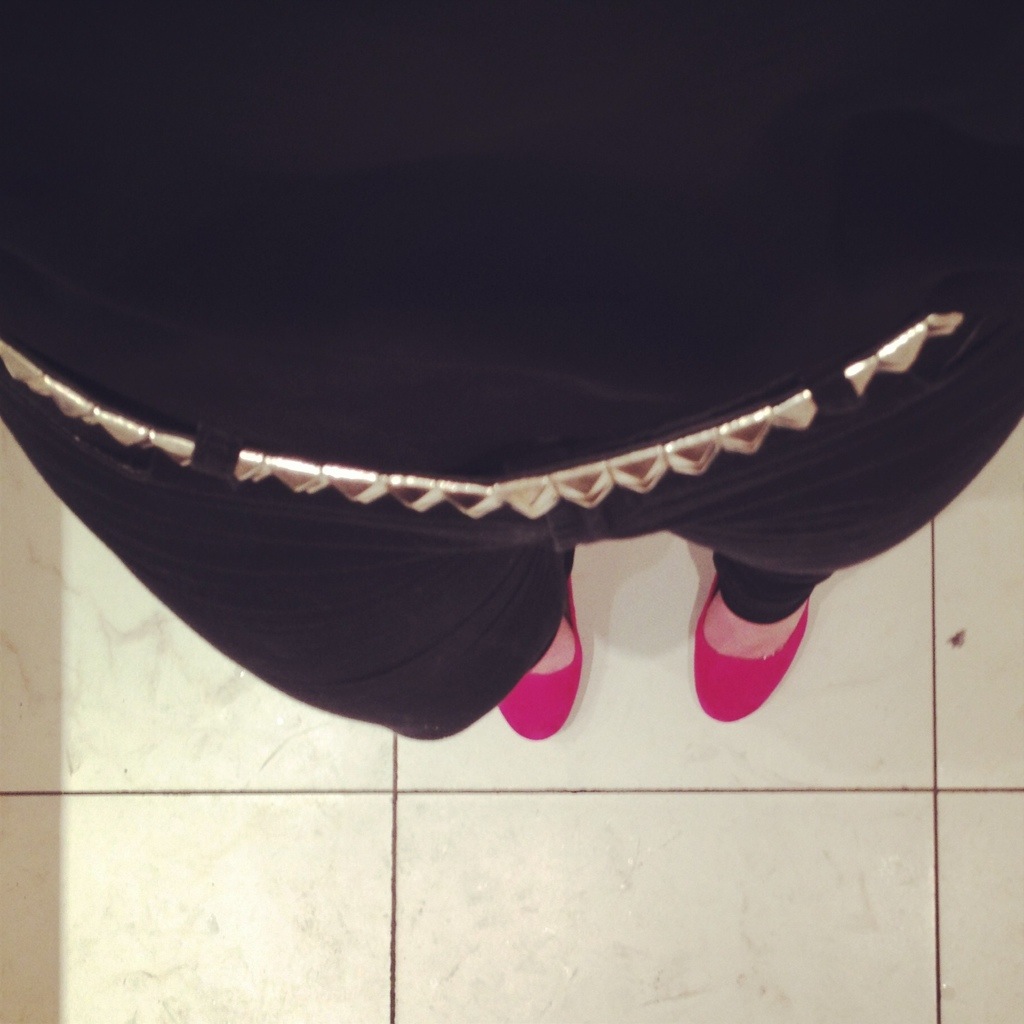 I had the thought I could put them on backwards showing off the belt and hiding the buckle under my top. You might have noticed I did this at the Munro’s Opening with my crocodile skin belt. This belt is just too cool to hide under a top. It’s real Crocodile skin, not the kinda thing I usually go for but crocodiles are horrid! My sister in law got it in Zimbabwe.