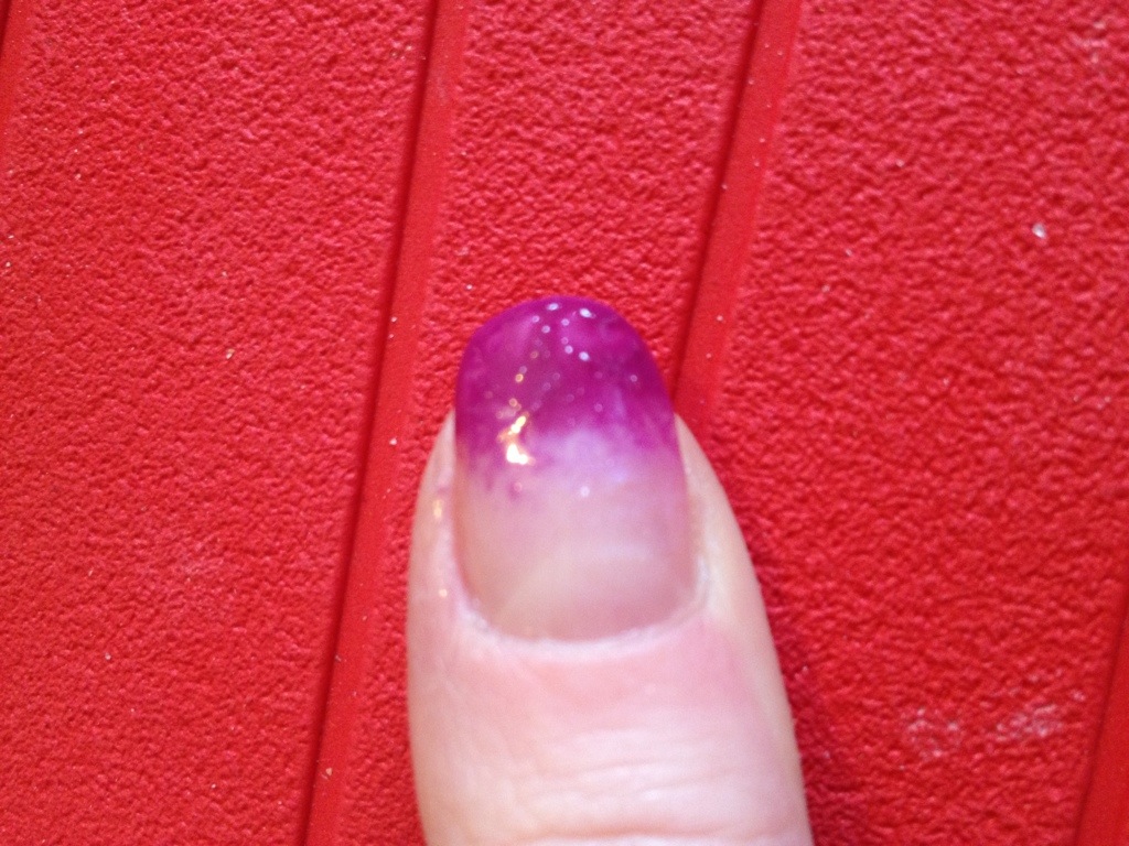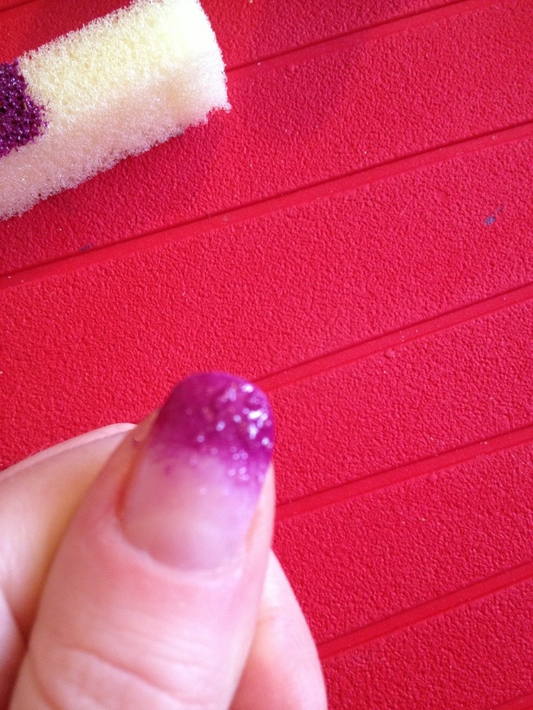 You then simply pat it on your nail. If you move the sponge up and down the nail a bit you get a nice blend.