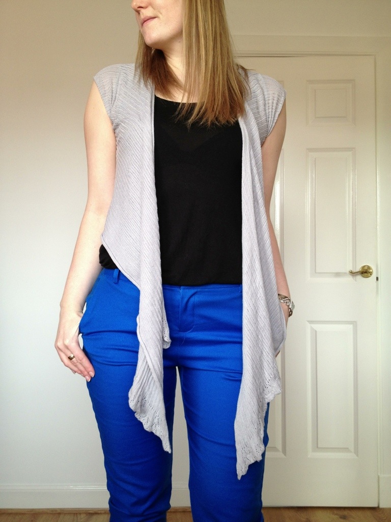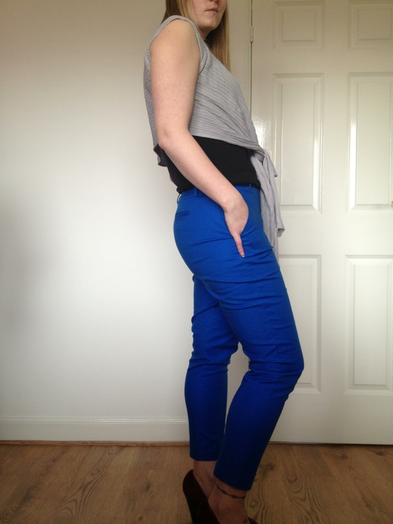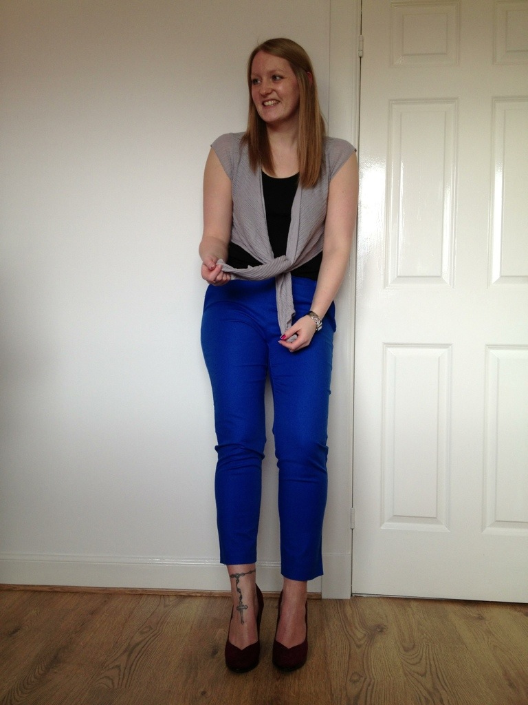 I love cigarette pants, I am beginning to have quite a collection of colours. These are my latest ones from forever 21. I couldn’t resist the electric blue colour. I love how they allow you to show off your shoes. You have to be careful though as some can be an unflattering fit, especially around the hips if your like me. This cardy helps create a long line down my body to balance my hips.