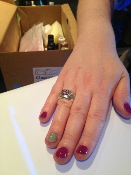 Everyone wanted a sparkly ring finger, doesn’t every girl? With Sarah going for a deep purple, Bex my favourite shimmery green and WestEnd Girl mixing it up with purple and grey. I love how Bex’s match her ring almost perfectly.
