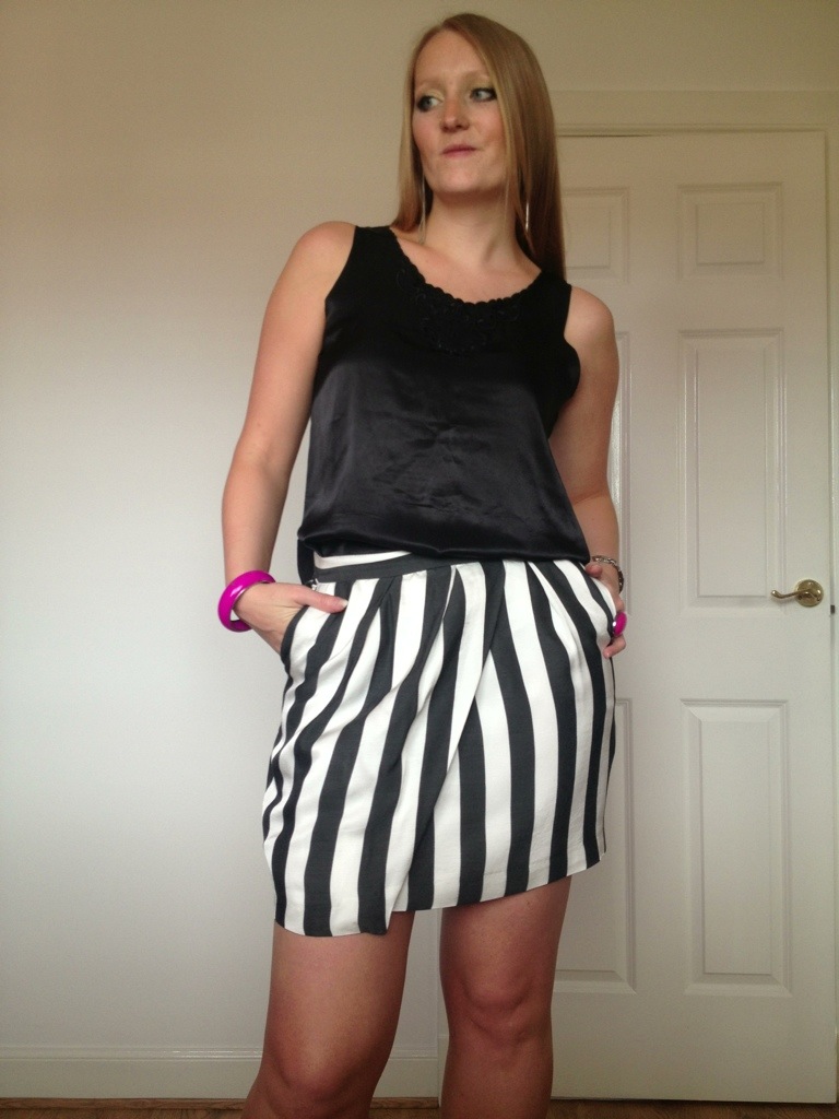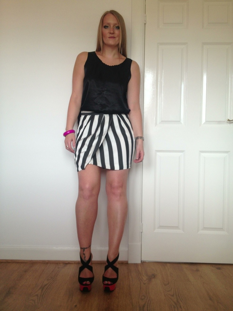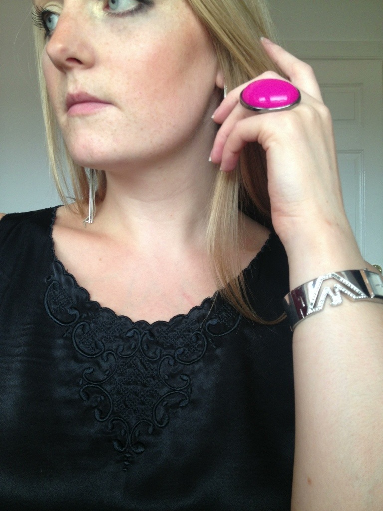 I was lucky enough to receive this beautiful black vest from Sarah. Its got beautiful detail and scalloped neckline. I figured it was perfect for a little monochrome look for my night at King Tuts on Friday. You must know by now how much i love monochrome, i can’t resist a bit of neon either and thought these heels just set the whole look off.