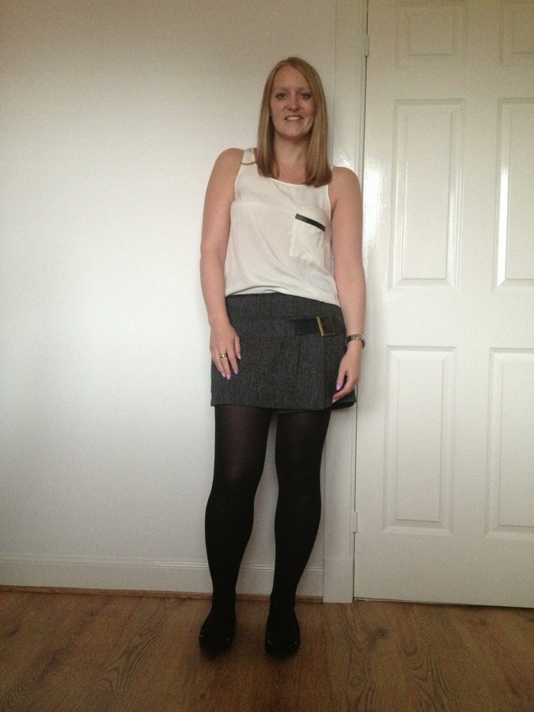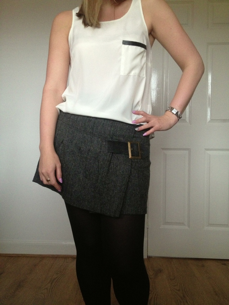 Since we’re now in this intermediary phase as summer ends and autumn begins; I’m mixing my trends. Little monochrome top and my new favourite, kilt inspired skirt. This skirt is a few years old now, it is true if you keep your clothes long enough they come back into fashion.