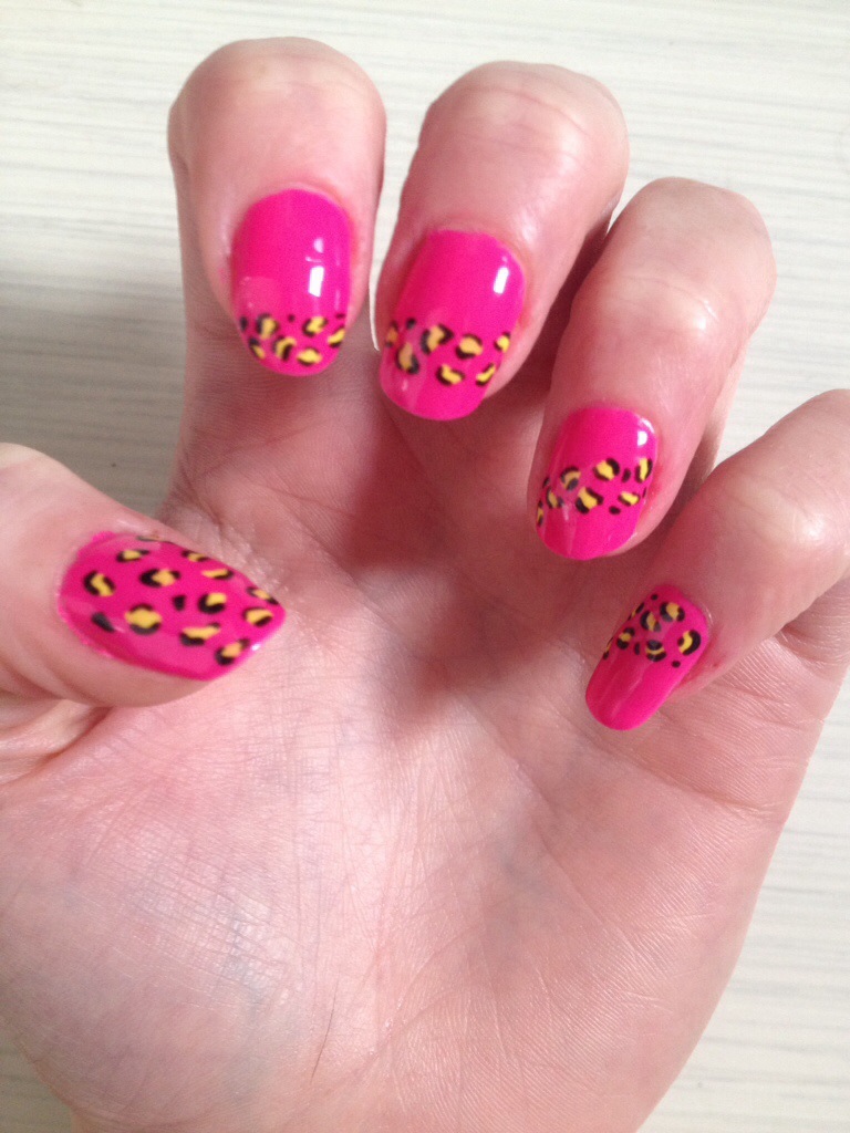 I’m off on my holidays on Friday so I had to get some bright colours on my nails. I decided on leopard print as I’ve not done it for ages.