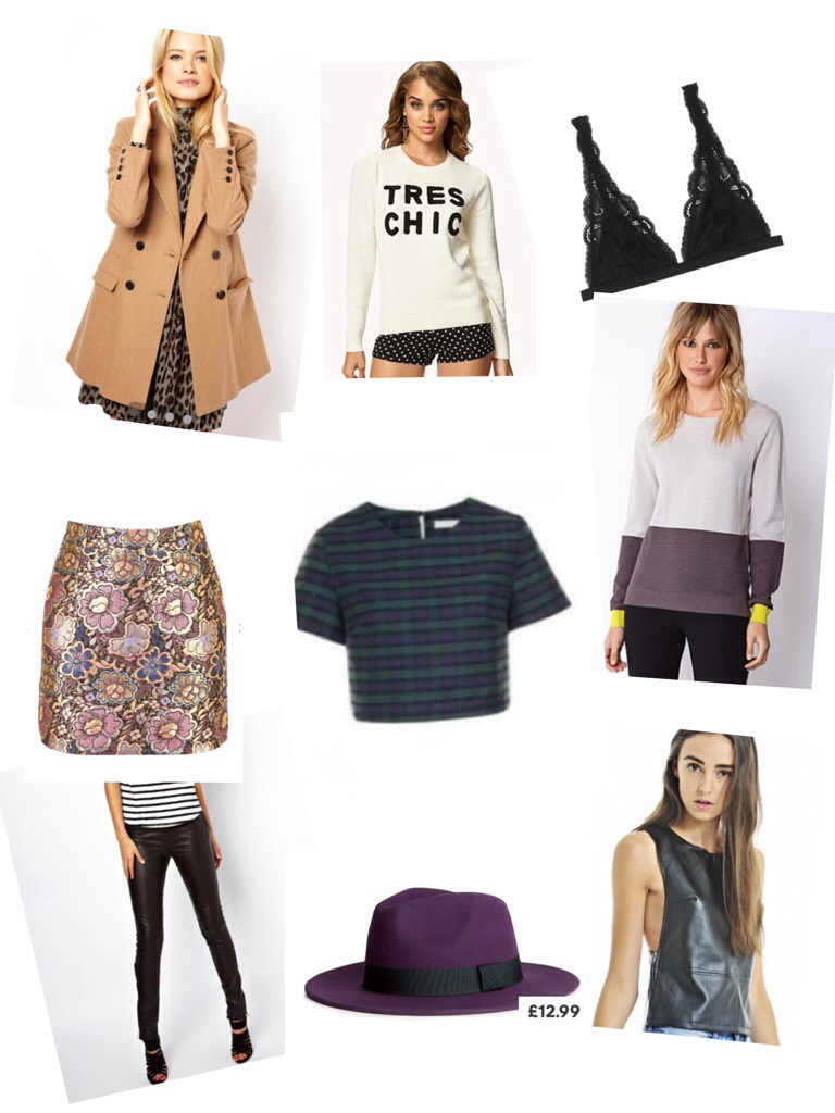 There’s a few classics I’ve been wanting forever but never seem to pick up, camel coat, leather trousers. A few big tends this season, fedora hat, tartan crop top. A few because they are so pretty, brocade and lace. The rest? Just because I love them.