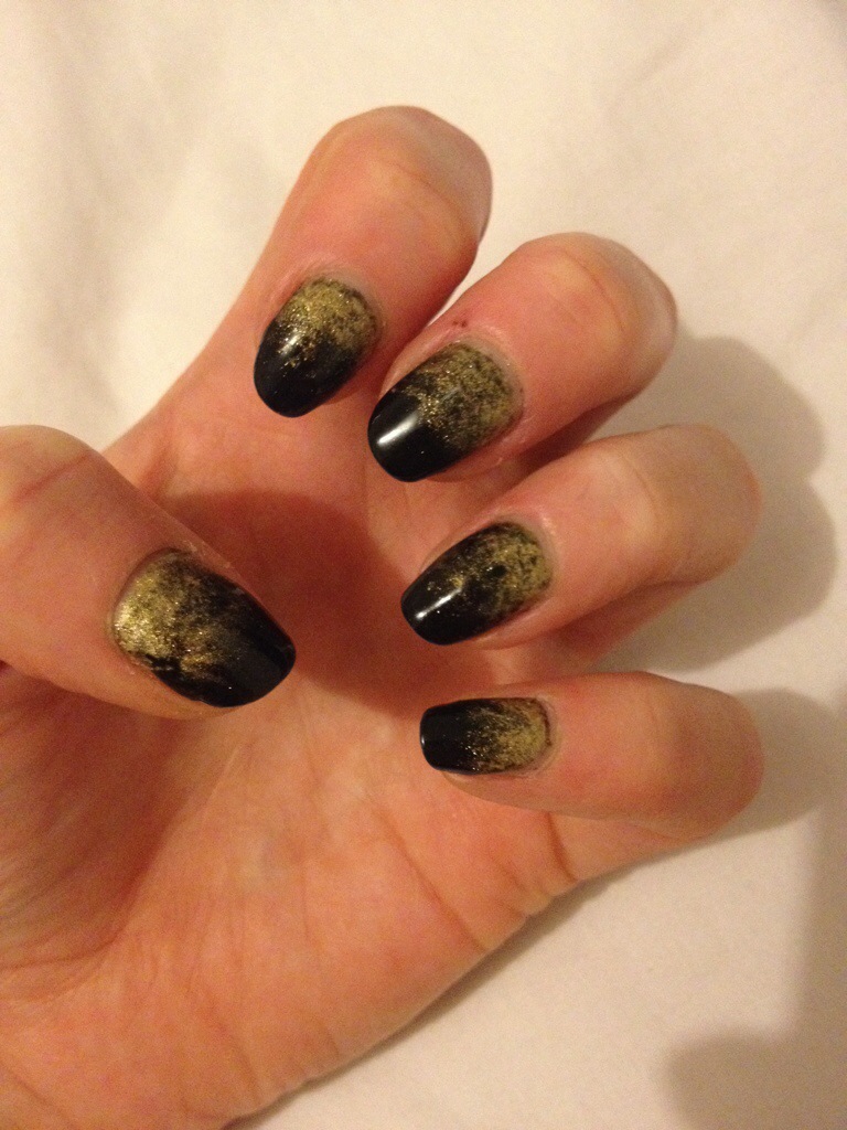 New Years called for sparkles but I wasn’t sure what I would be wearing when I painted these. I figured you can’t go round with black and gold and I was right. They set off my new Rebecca Torres dress lovely.