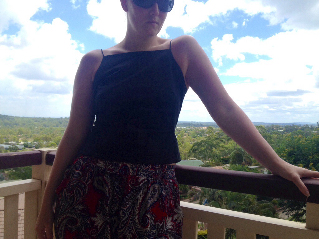 Thankfully I packed these funky harem pants my sis brought me back from Australia last month. I’m not sure how or where I would wear them at home but they are perfect for covering up and keeping cool over here. This top is a old favourite from Next , this is not the first occasion I’ve worn it to cover up a red chest. I have not had much chance for heels this holiday, the heat and running around with a four year old do not call for heels. They set off this outfit perfectly though.