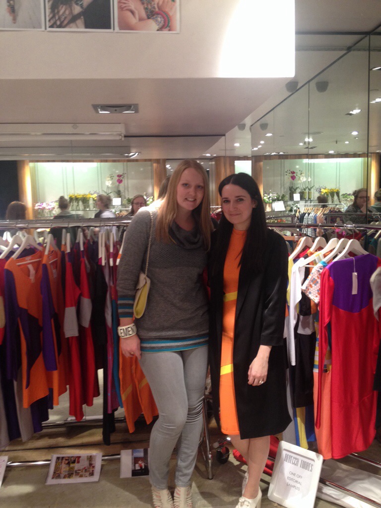 I was very close to buying the gorgeous Iona Joanne McGillivray dress, with 70% off it was hard to say no. Isn’t that print just amazing, I’d have it in the dress, skirt and trousers if I could. I was also introduced to Antithesis. Antithesis have a beautifully simple little navy dress which you can transform by zipping on a range of embellishments to the chest. I’m talking fringing, feathers and ribbons ladies, amazing. There’s also some sparkly jewellery offerings for all you magpies out there.