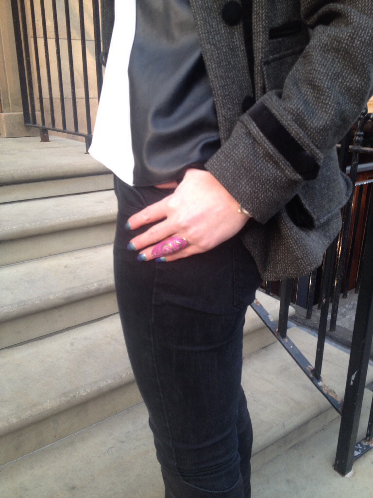 That jacket is a keeper! It has a bit of an edge to it that makes it classic and would easily elevate a pair of jeans and t-shirt look. It’s my trick, too, when wanting to add a little spice – it’s in the jacket (or blazer, which is also awesome!) p.s. I’m digging the nail polish! Color?