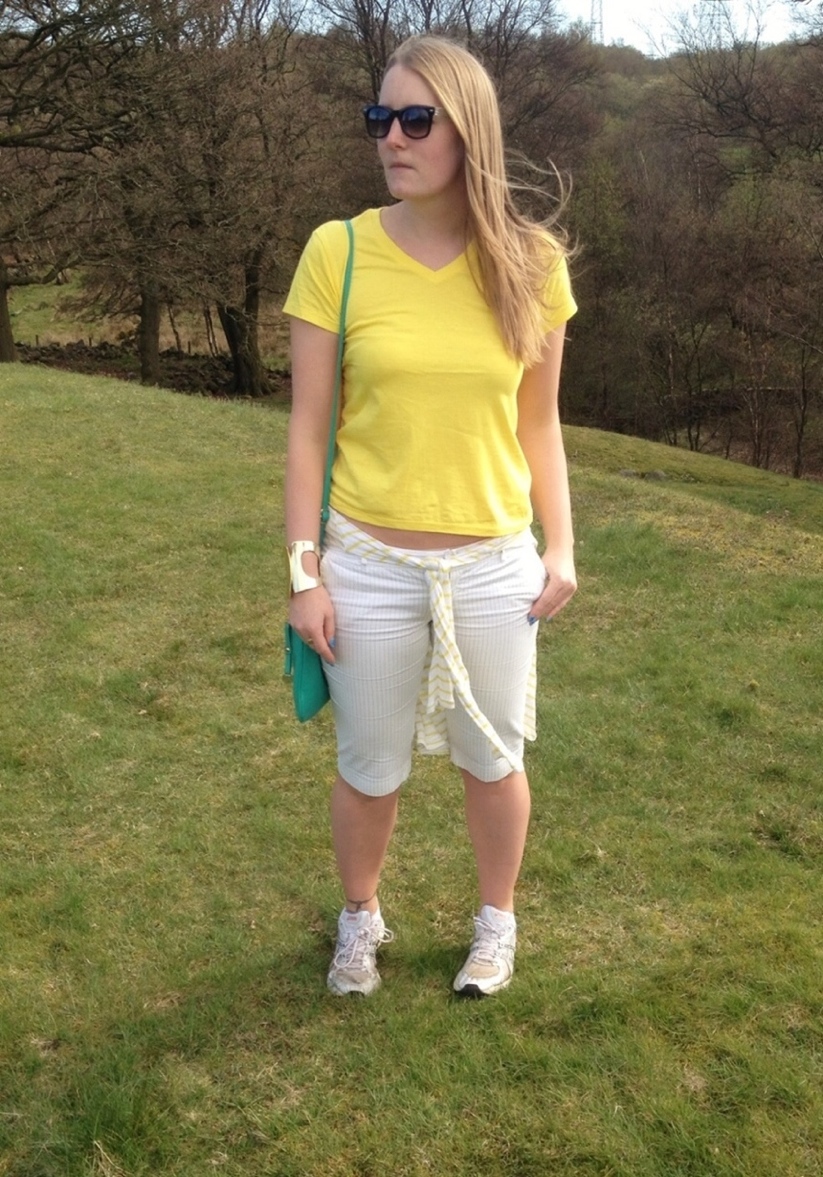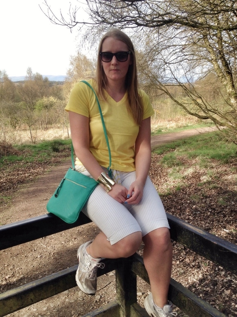 Does this outfit still count as Sports Luxe when the trainers are two years old rather than brand new Nike Free’s? Well, I hope it does as the man asked if we were going to play tennis when he saw it, so I’m there on sports feel regardless of the trainers. He is right, as much as it pains me to admit it, even the double stripes and bright yellow tee don’t distract from it.