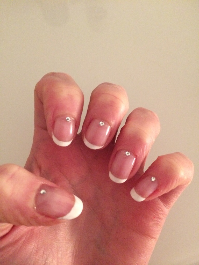 So this week my nails have a simple French manicure. I couldn’t resist adding a little sparkle though.