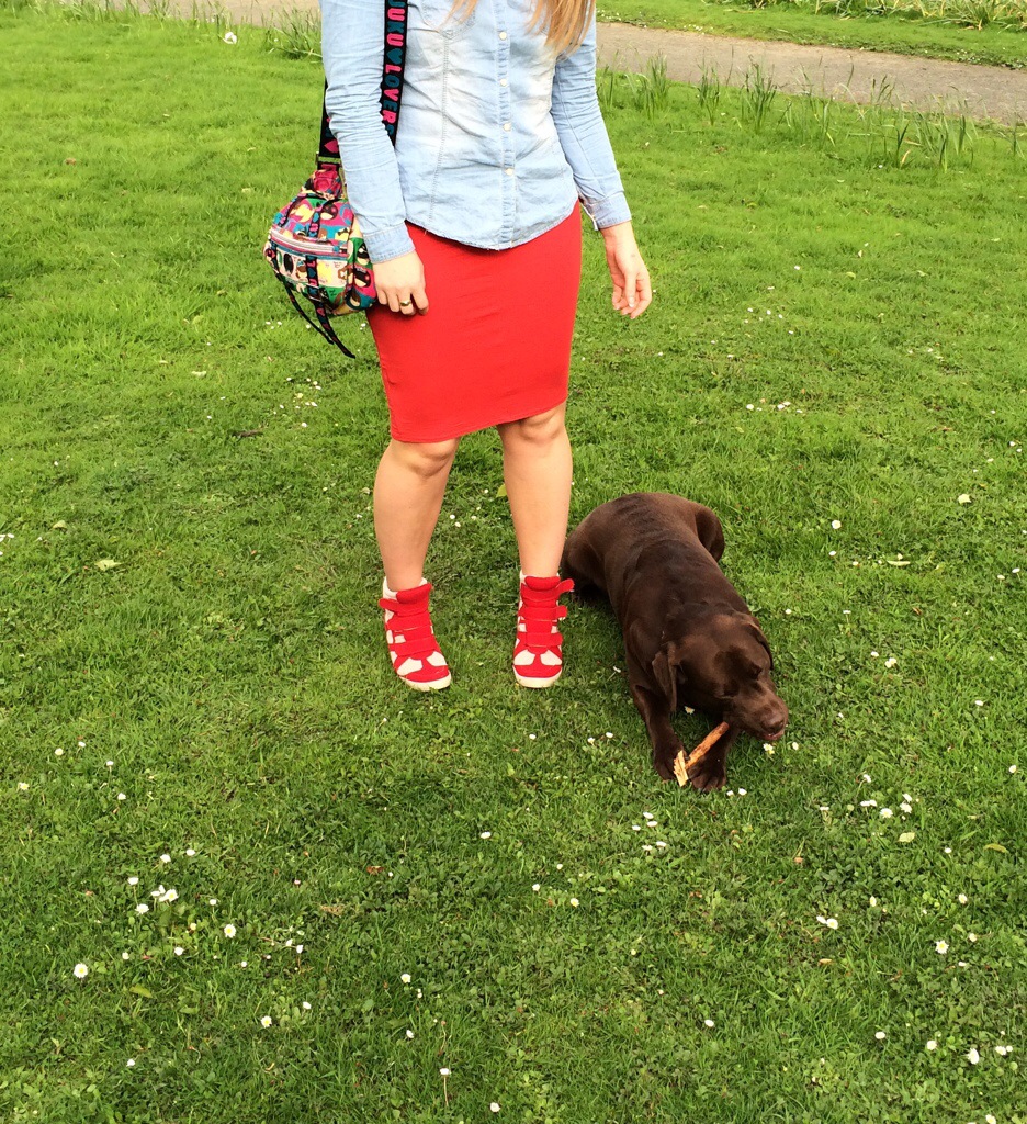 This little red dress is becoming the favourite item in my wardrobe. I originally bought for my anniversary dinner and is gorgeous with some heels and statement jewellery. I’ve realised I can throw just about anything over it though. On Sunday that was my trusty denim shirt, again something I can wear with anything it seems.
