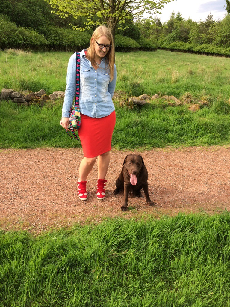 With some wedges trainers, it was just about suitable attire for walking Seb. He was not impressed that his walk was interrupted with a photoshoot though.