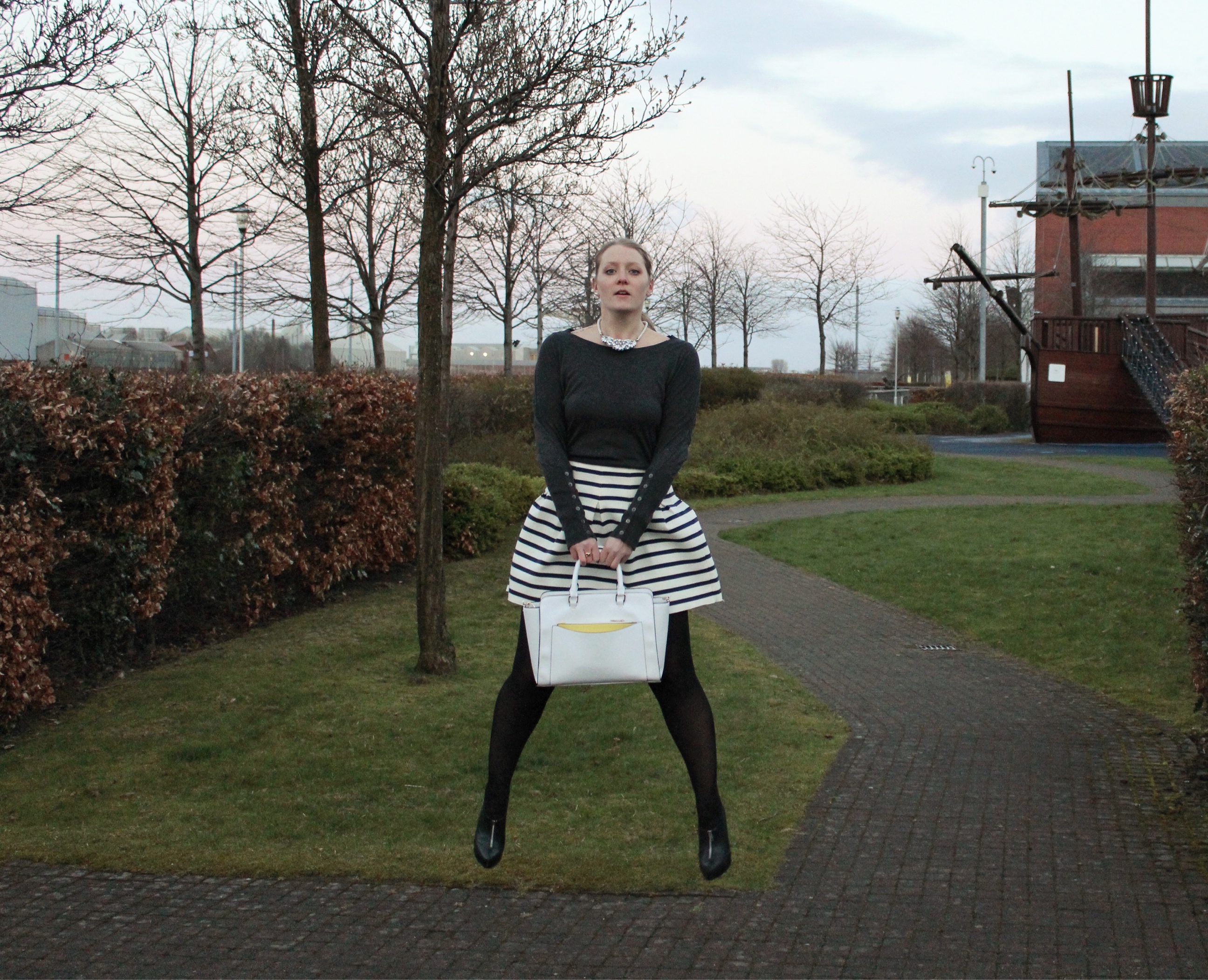 There was a last minute change in this outfit when the sun disappeared and grey skies, and even snow, returned to Glasgow. This little skirt is versitle though and took the spring to winter change in its stride. Made me love it even more.