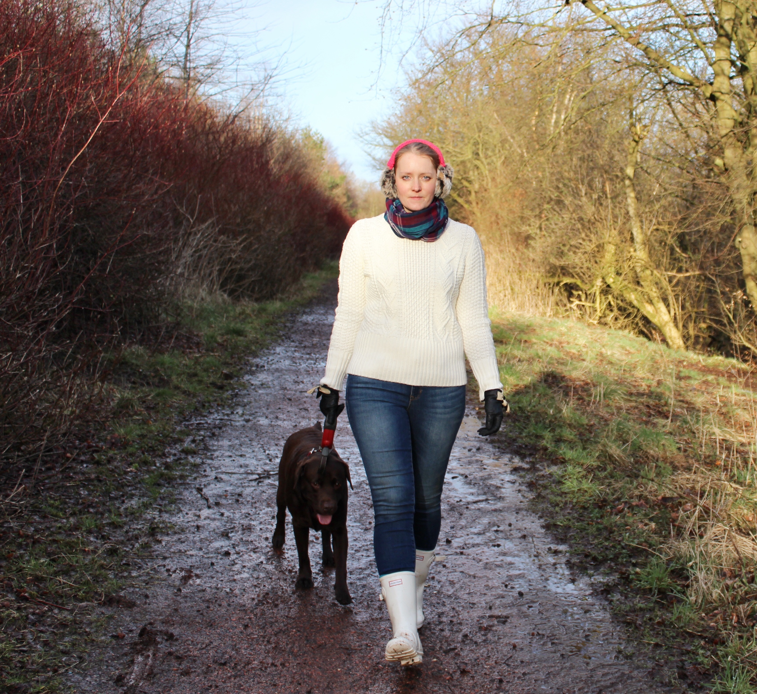 This is what dog walk looks like just now. No fancy shoes or spring layers. The weather seems to switch between pouring rain and sunny but freezing. So wellies, sweater and scarf it is.