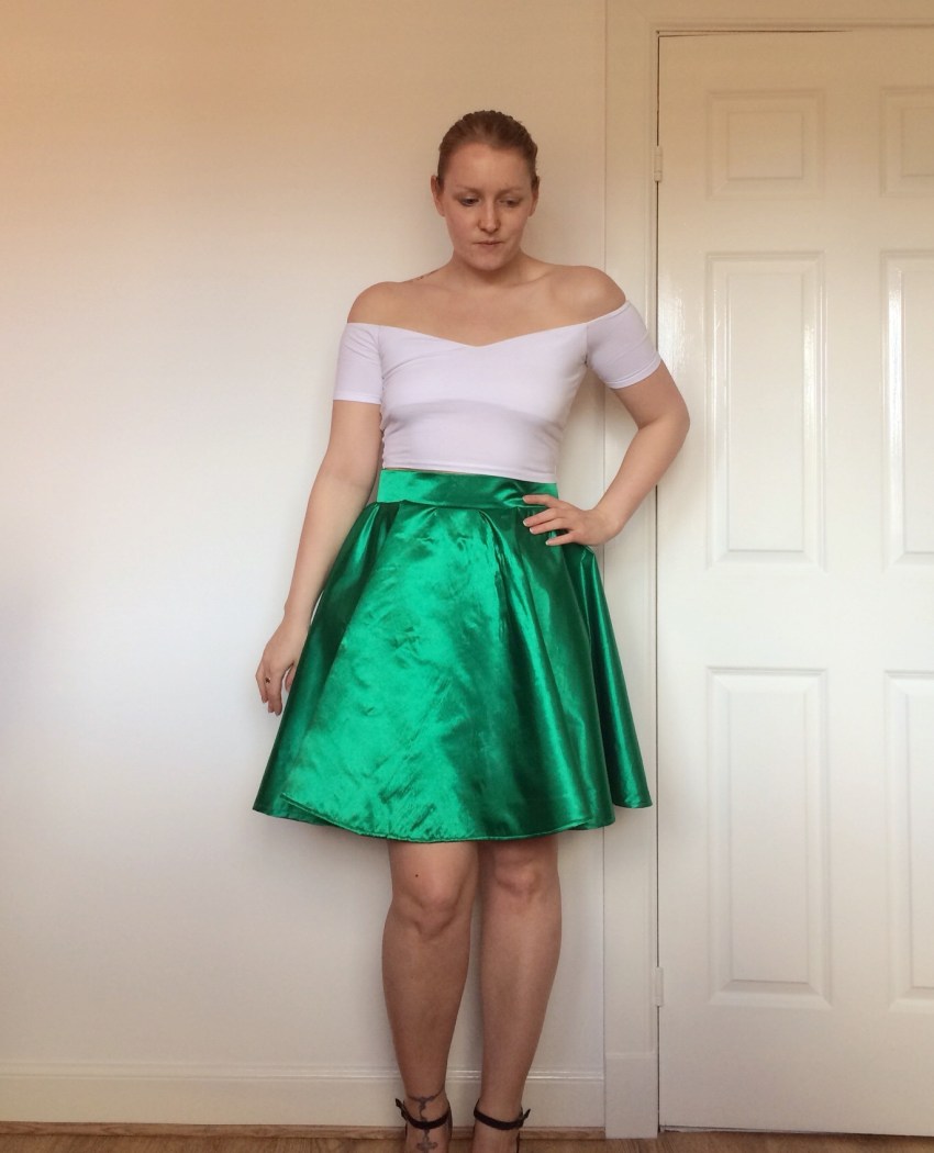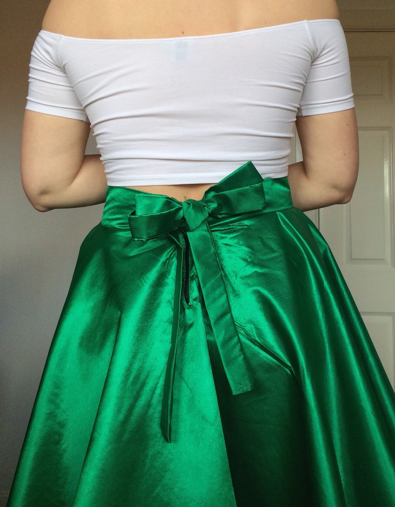 I picked up this gorgeous green satin on eBay here, total bargain. It is quite thin though so I also picked up some interfacing to stiffen it. You may only want to use the interfacing for the waistband though.