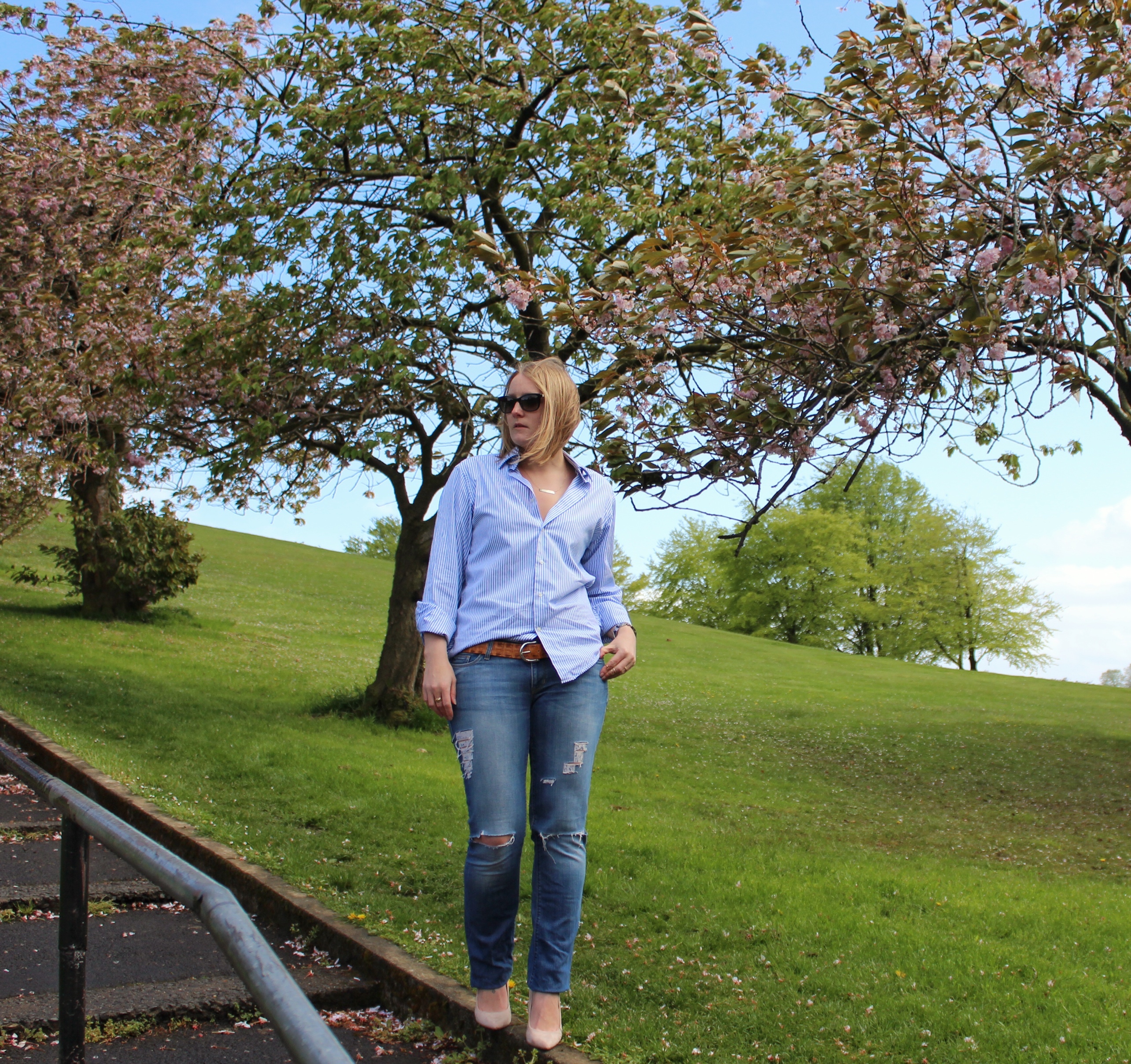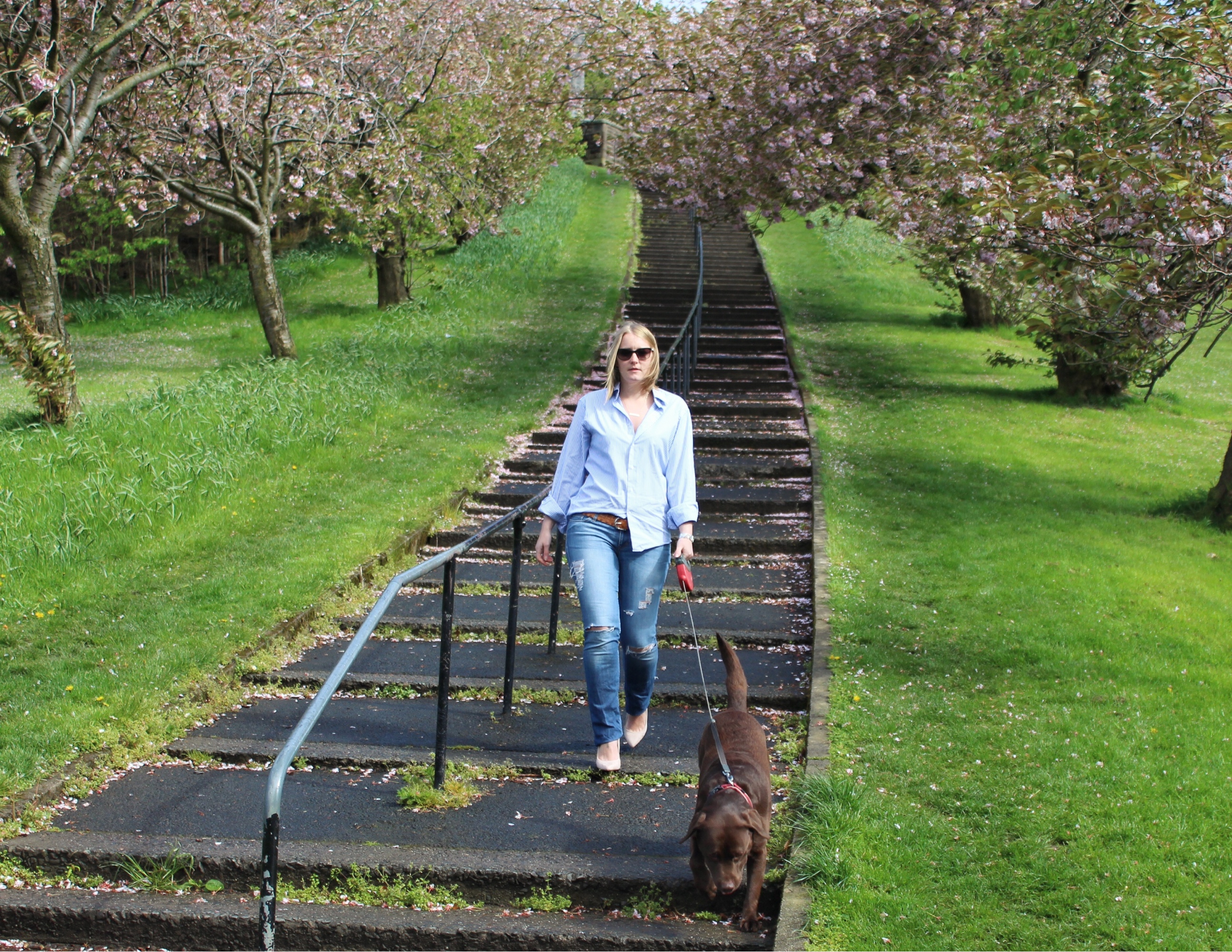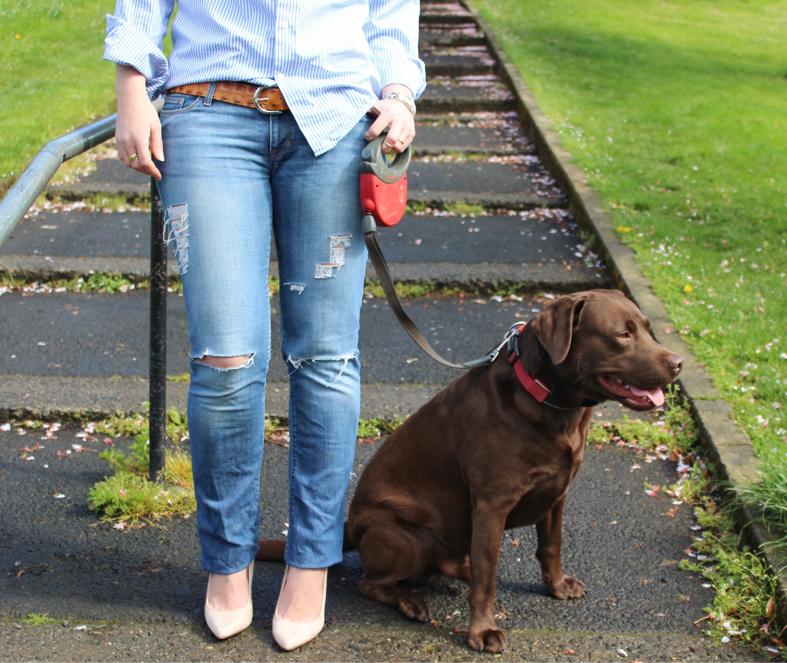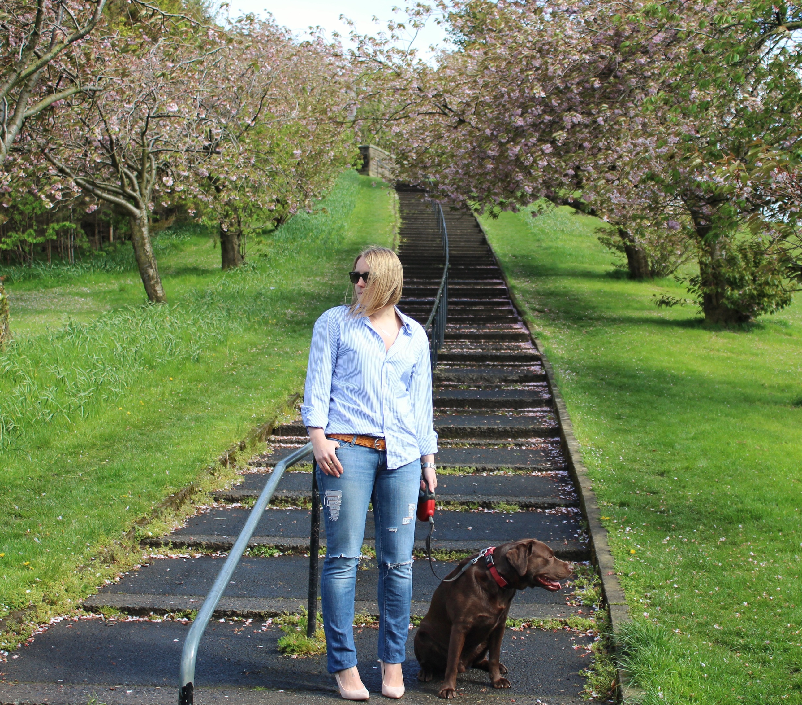 On lazy days like this the style has to be easy. My man’s favourite shirt, or is it my favourite? Oversized and striped, perfect right? Teamed with freshly ripped jeans. Yes the crafty bug continues with these beauties, DIY coming soon. Even Seb’s taking it easy and refusing to pose, dogs eh who’d have them?