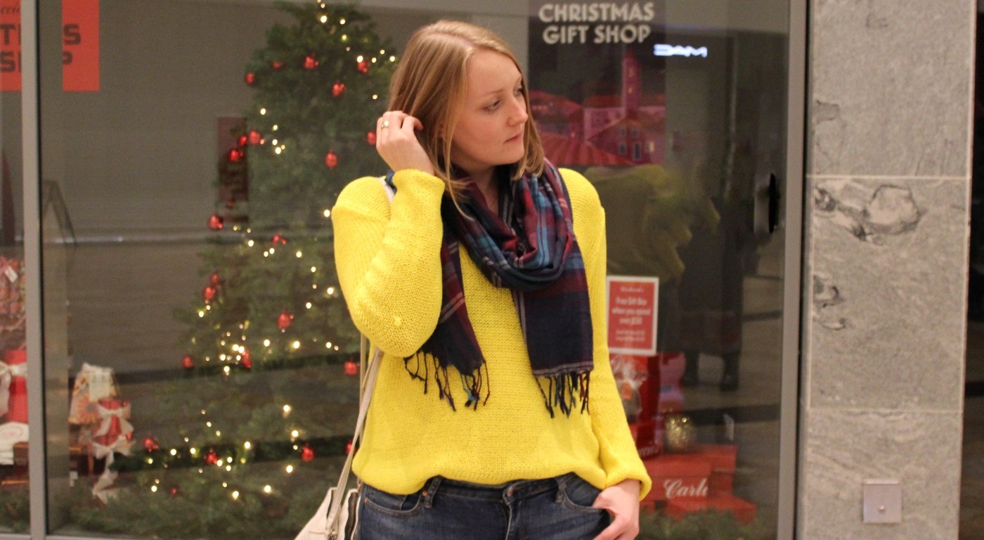 Yellow-sweater-winter-layers-outfit-Glasgow