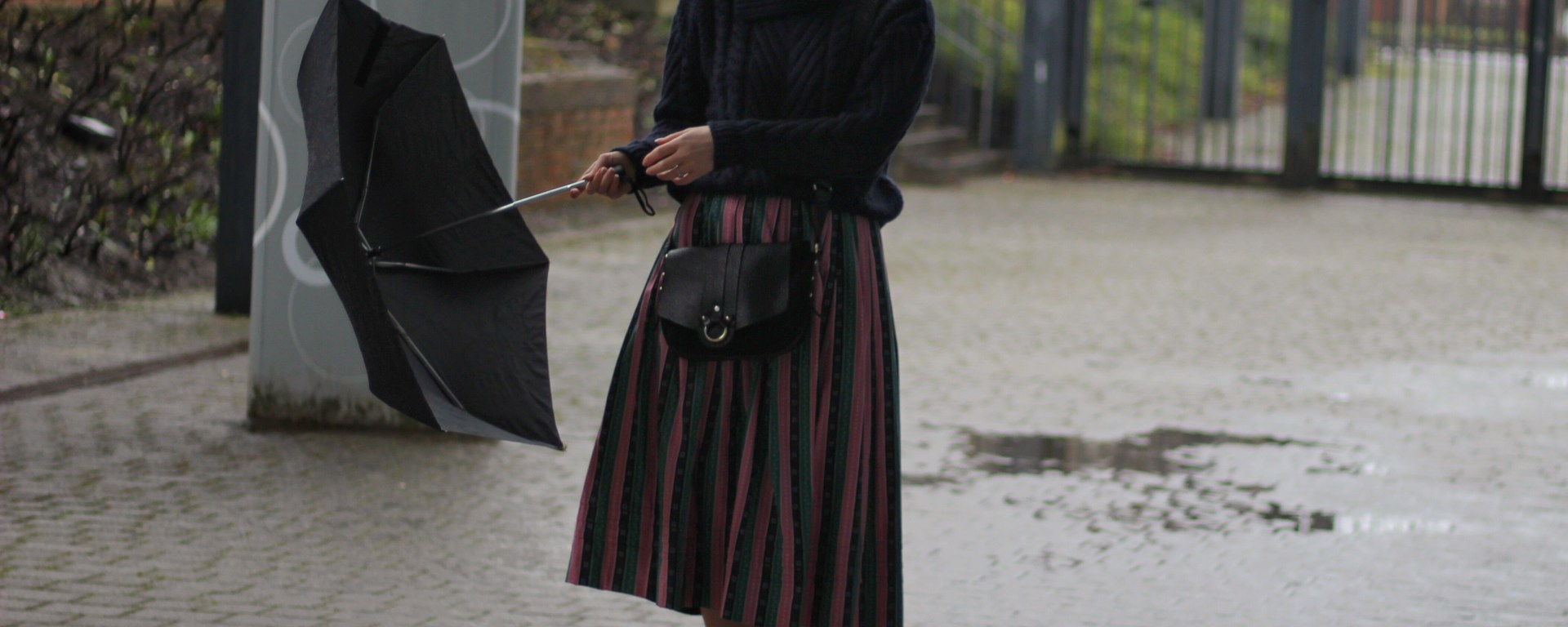 So on a rainy Saturday afternoon we sought out a quiet under cover space and managed to find this little spot. This cosy Zara sale knit saving me from the cold and allowing a flash of skin with the bare legs. Cosy knits are my saviour this time of year and this navy basic was a perfect match for my vintage skirt on a dull rainy day.