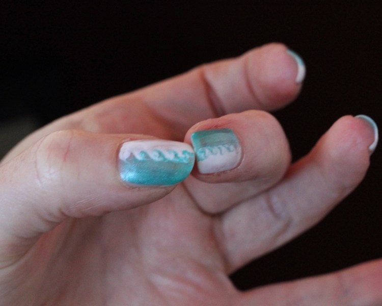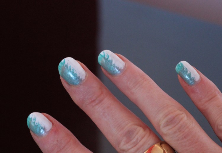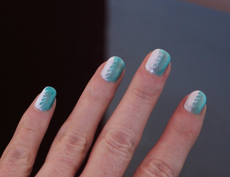 I have to say I love these little swishy nails. I want to swish them around and see how the light catches the sparkle in the green polish.