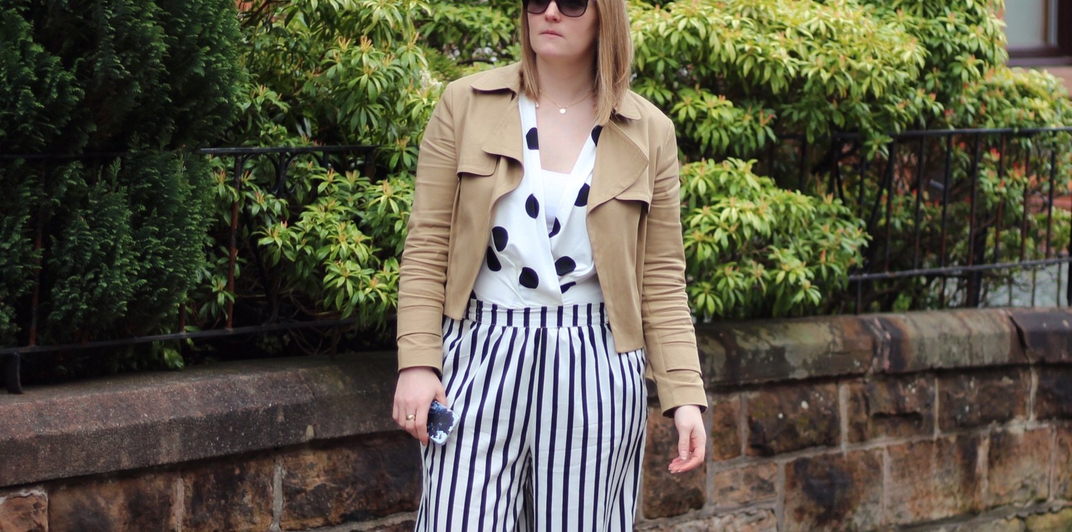 Just because it’s monochrome doesn’t mean it needs to be plain. If I’m keeping things black and white there’s got to be a pattern or two involved.What better patterns to choose than spots and stripes. I fell in love with this Zara bodysuit as soon as I seen it,I dare you not to love those giant polka dots. On closer inspection it was the perfect top for feeding the little guy so yeah I may have bought it in every colour now. The palazzo pants are oldies but goodies. Where once they were resigned to the holiday/summer wardrobe, that elastic waistband has made them a go to for the last year. I’m not taking them off anytime soon, in fact, I think I should invest in some new stretchy palazzos, suggestions welcome.
