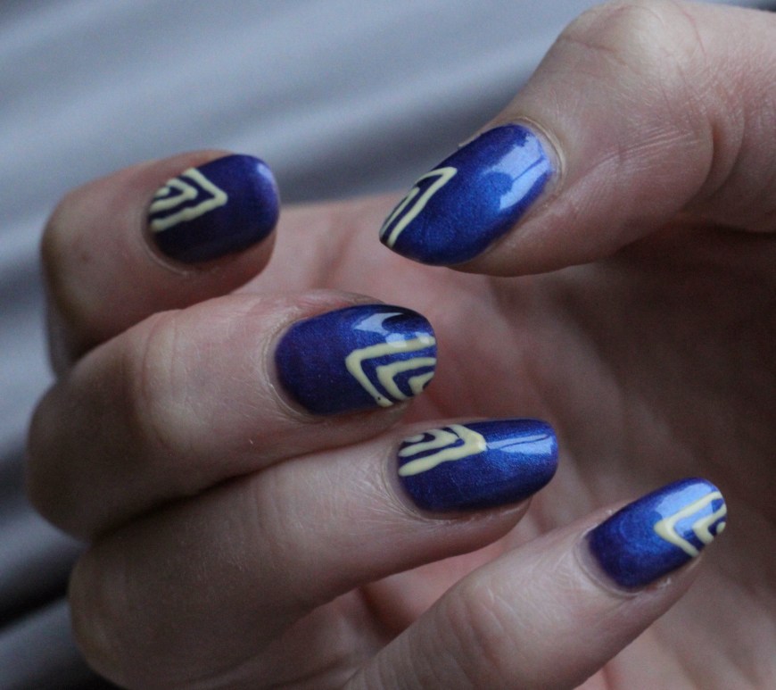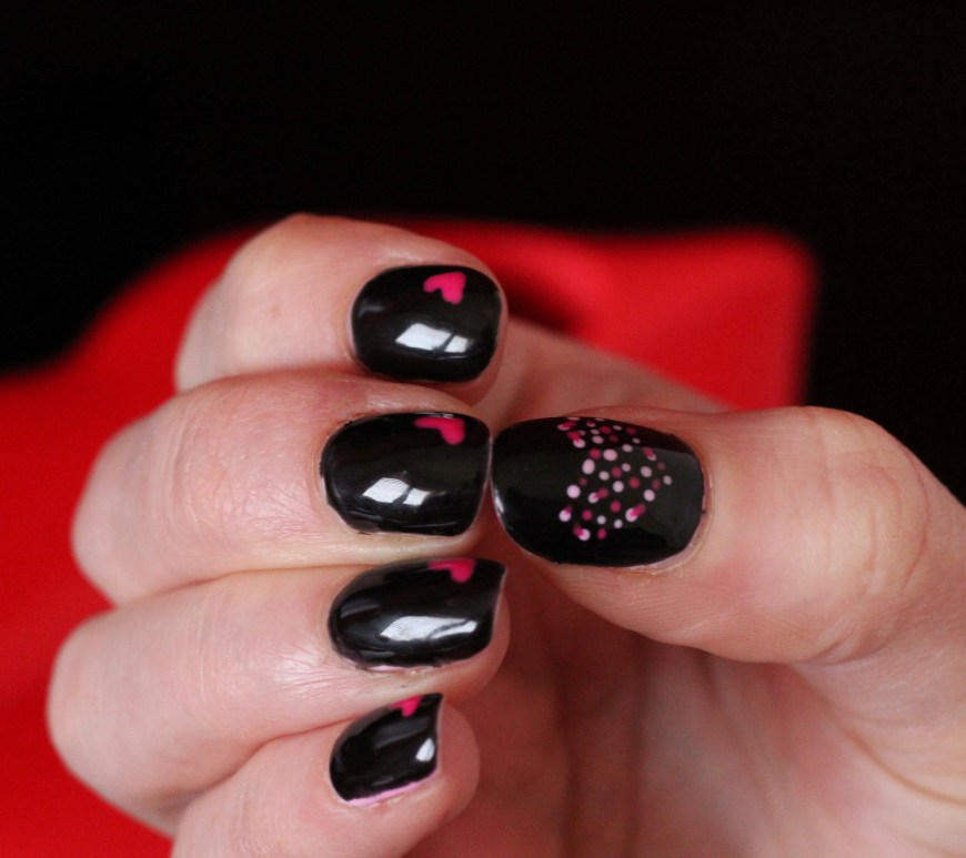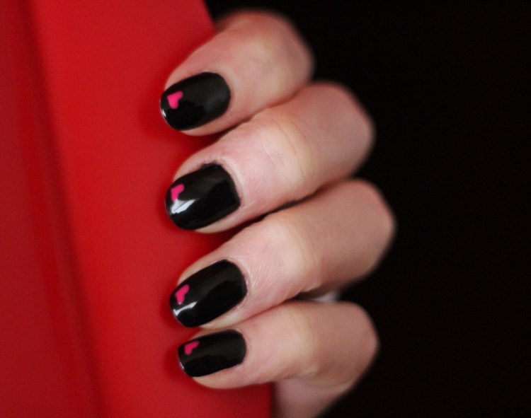 A change of heart indeed, these nails started off pale pink with gold flashes. I didn’t like them at all. Rather than take it off I just covered it over with black polish; call me lazy.